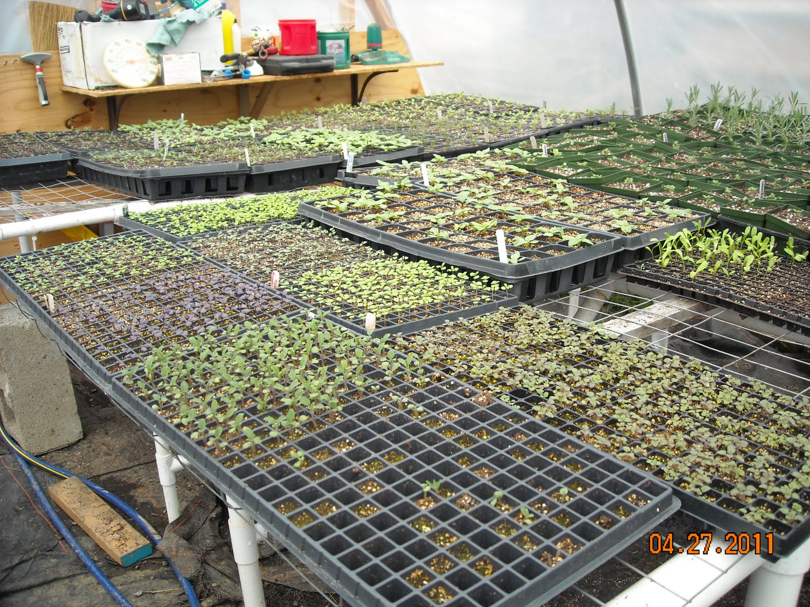 There is a lot supposed to be going on at the farm, but this rain and whatever this spring is throwing at us this year is not helping! One day it is warm the next it is cold. Yesterday it was hailing, snowing, raining and wind was whipping all at once. Miserable, miserable day! The kids have been a little sick so unfourtunately I have not been helping too much in the greenhouse. We are also running out of space in our heated section! Which means that these warmer temperatures have to get here NOW! I am very anxious to get into the flower beds...which yes I probably already should have done, but the stuff in the greenhouse is a little more important than my flower beds!